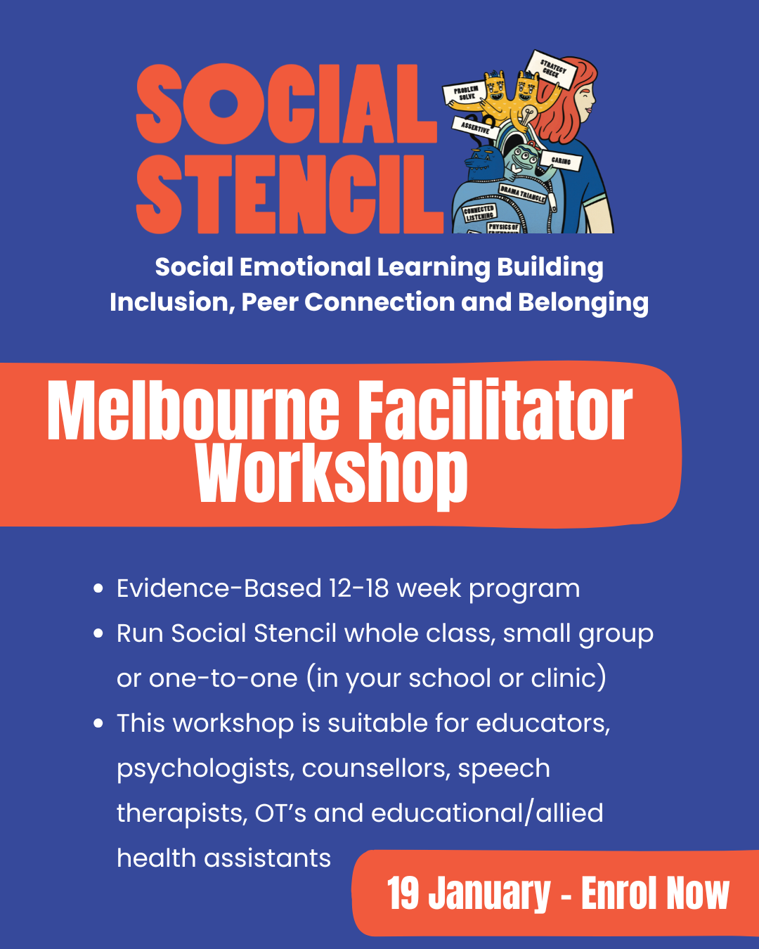 The One-Day Clinicians Workshop provides the theory, framework, concepts and case studies to support clinicians to share Social Stencil with the young people they support.